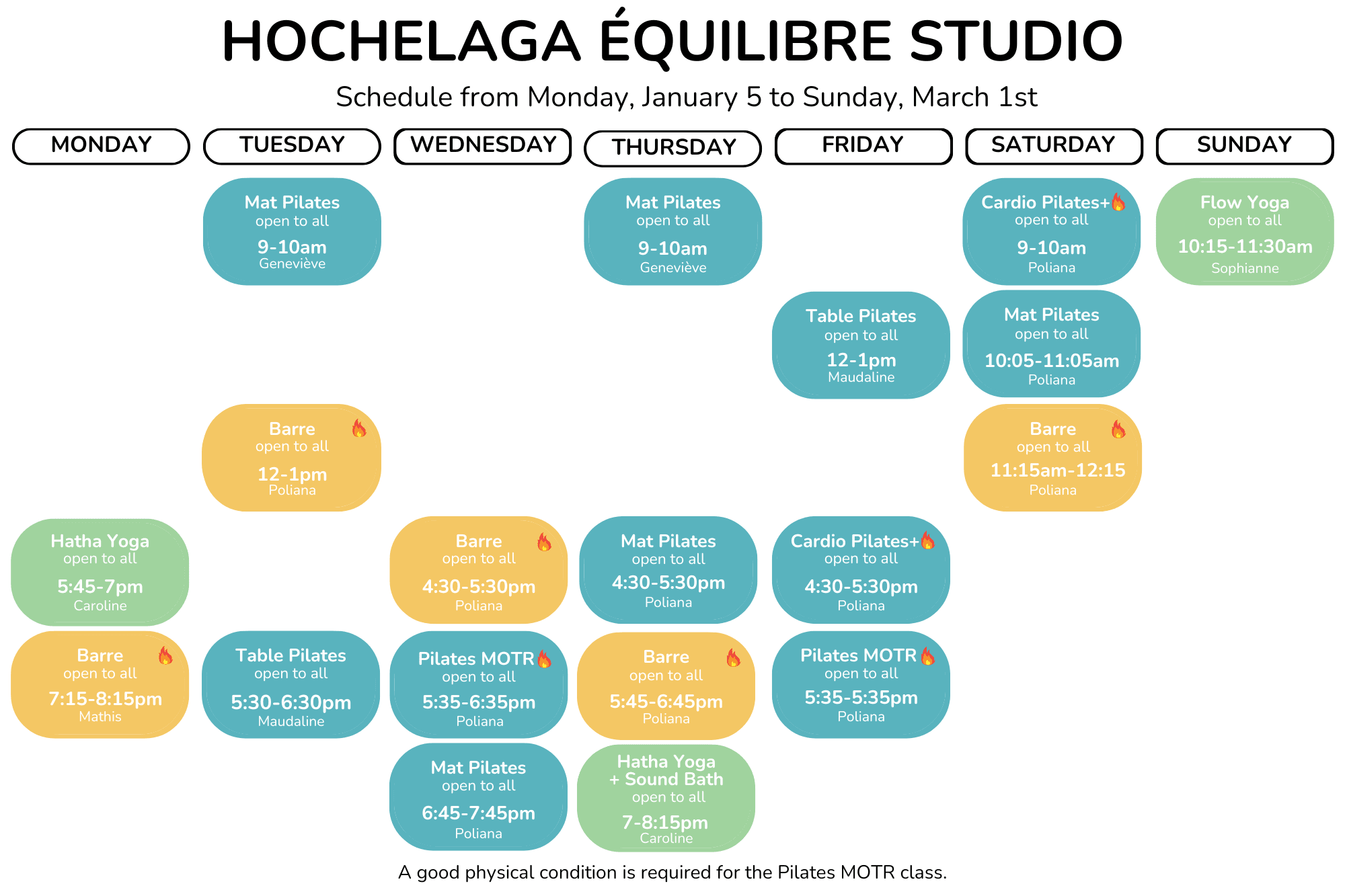 Using the tabs, you can sort the classes displayed below according to your preferences: studio location, level, instructor, etc.