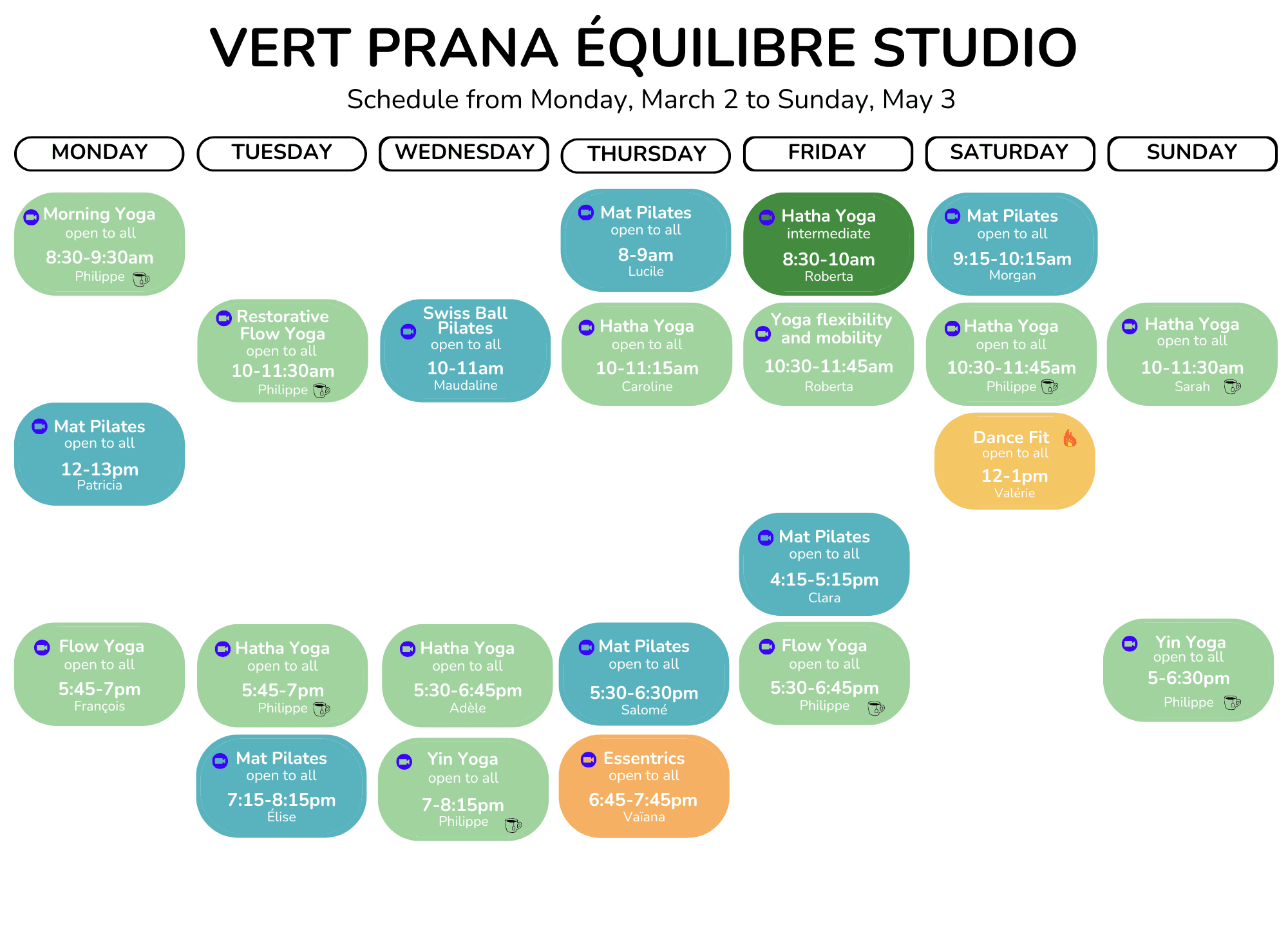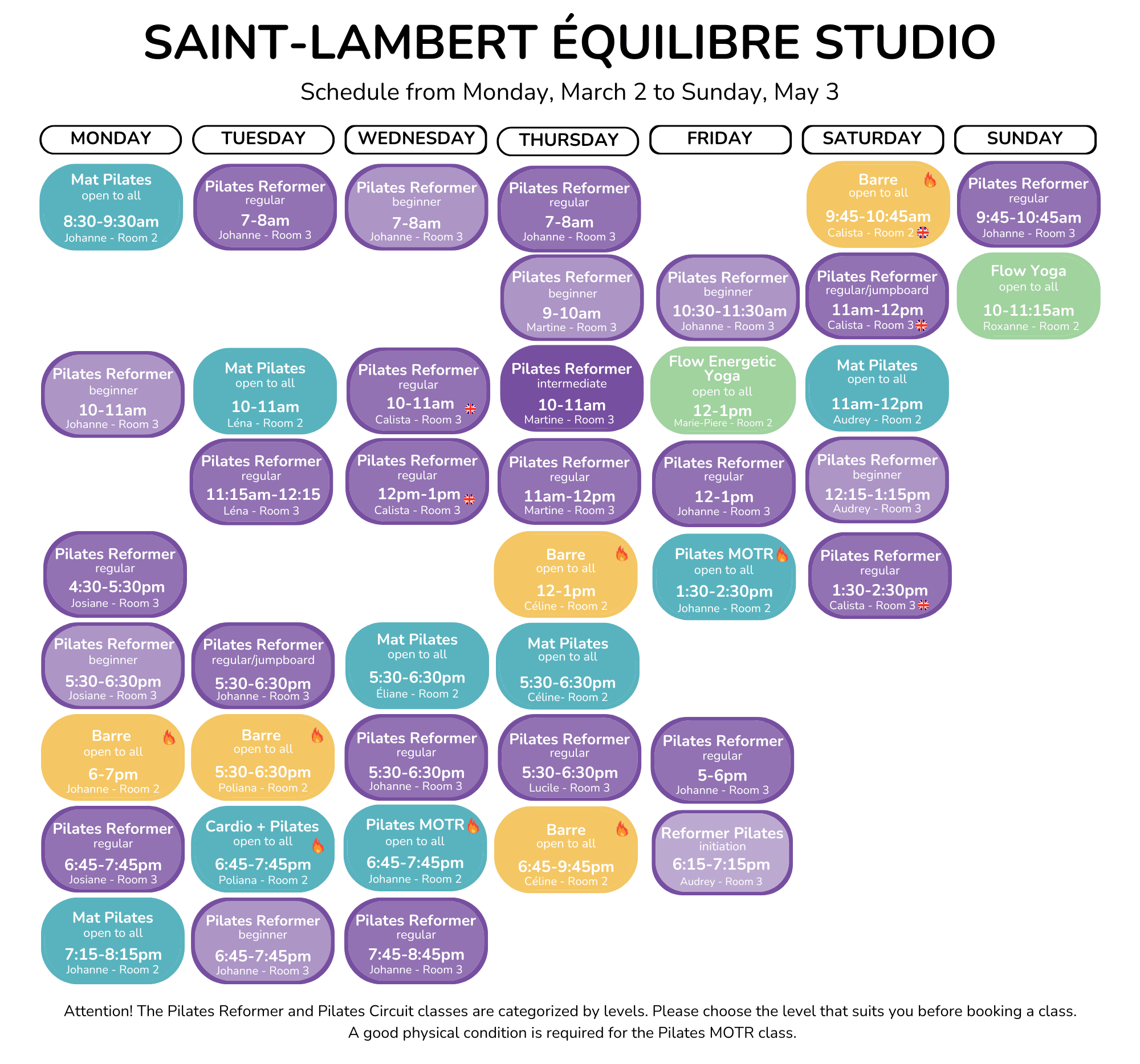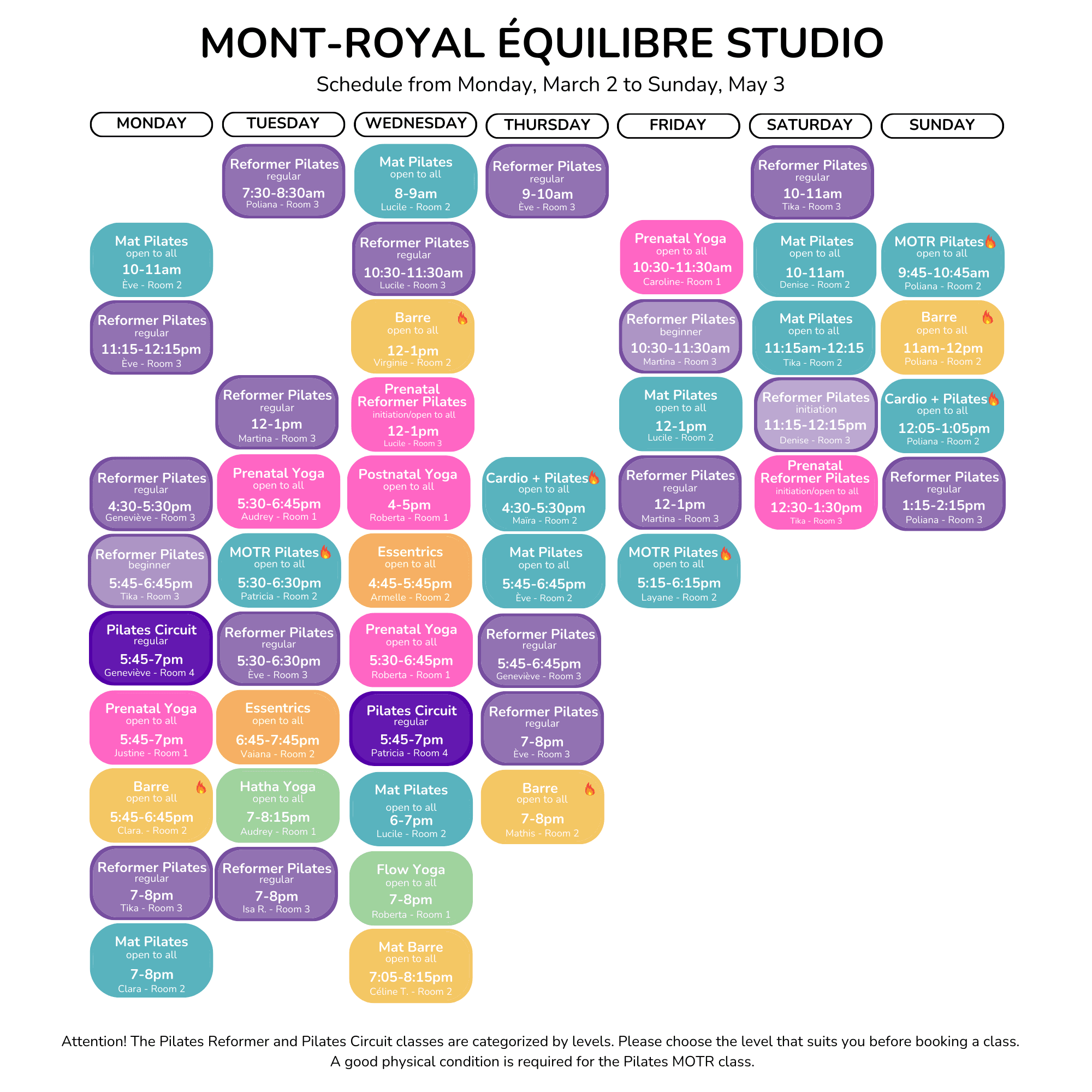 Schedules March 2 to May 3, 2026