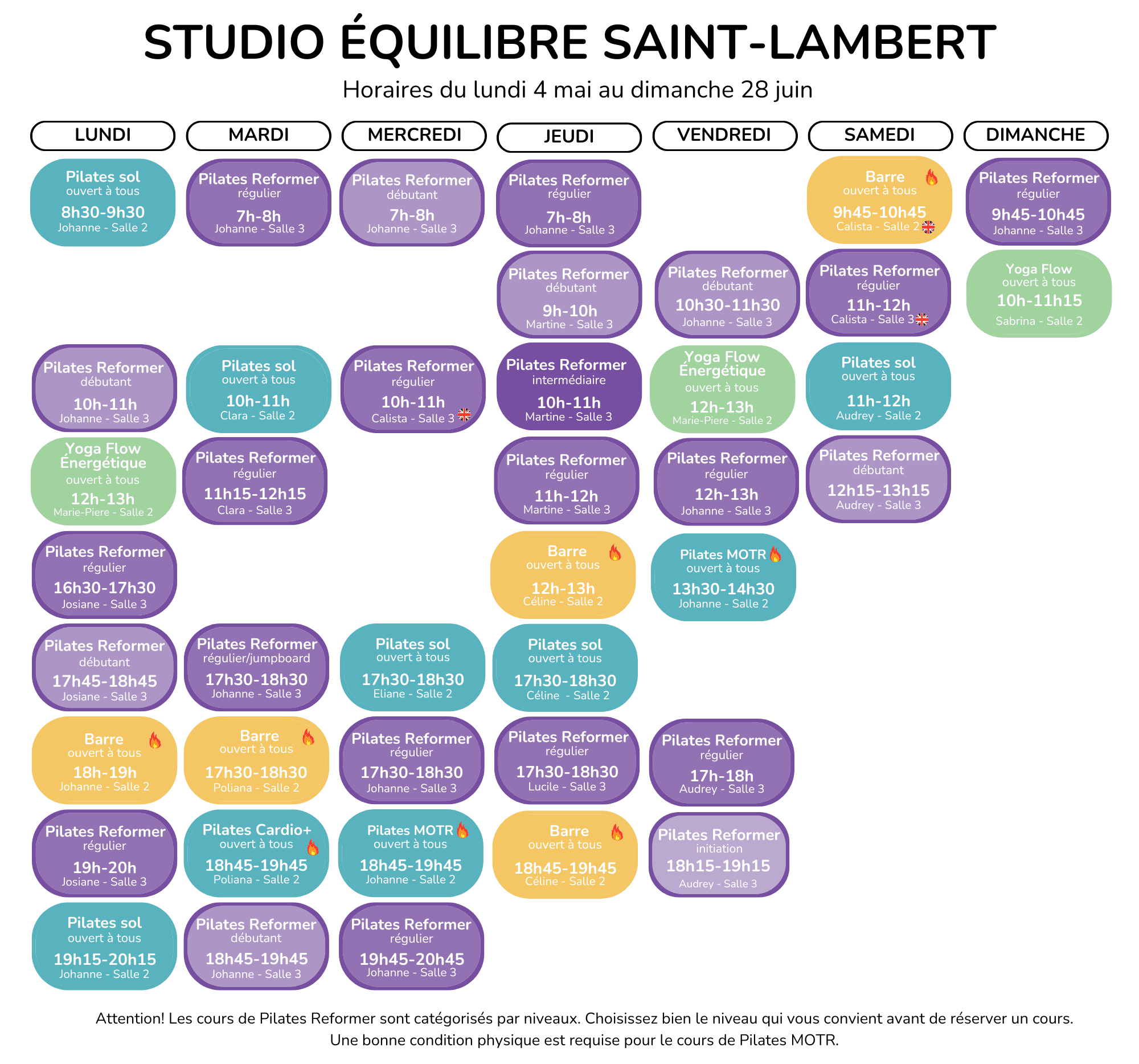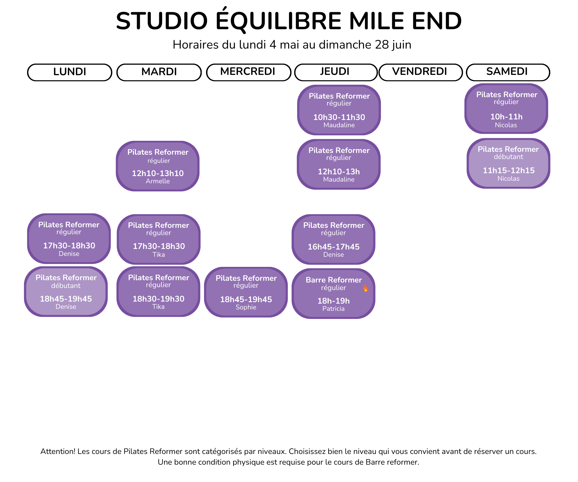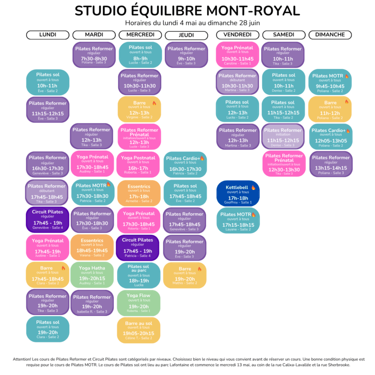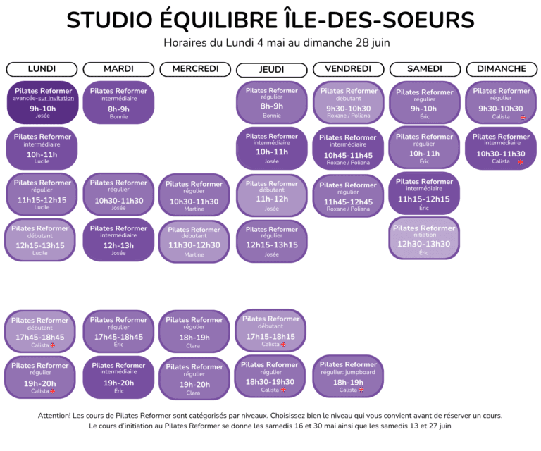 Horaires du 4 mai au 28 juin