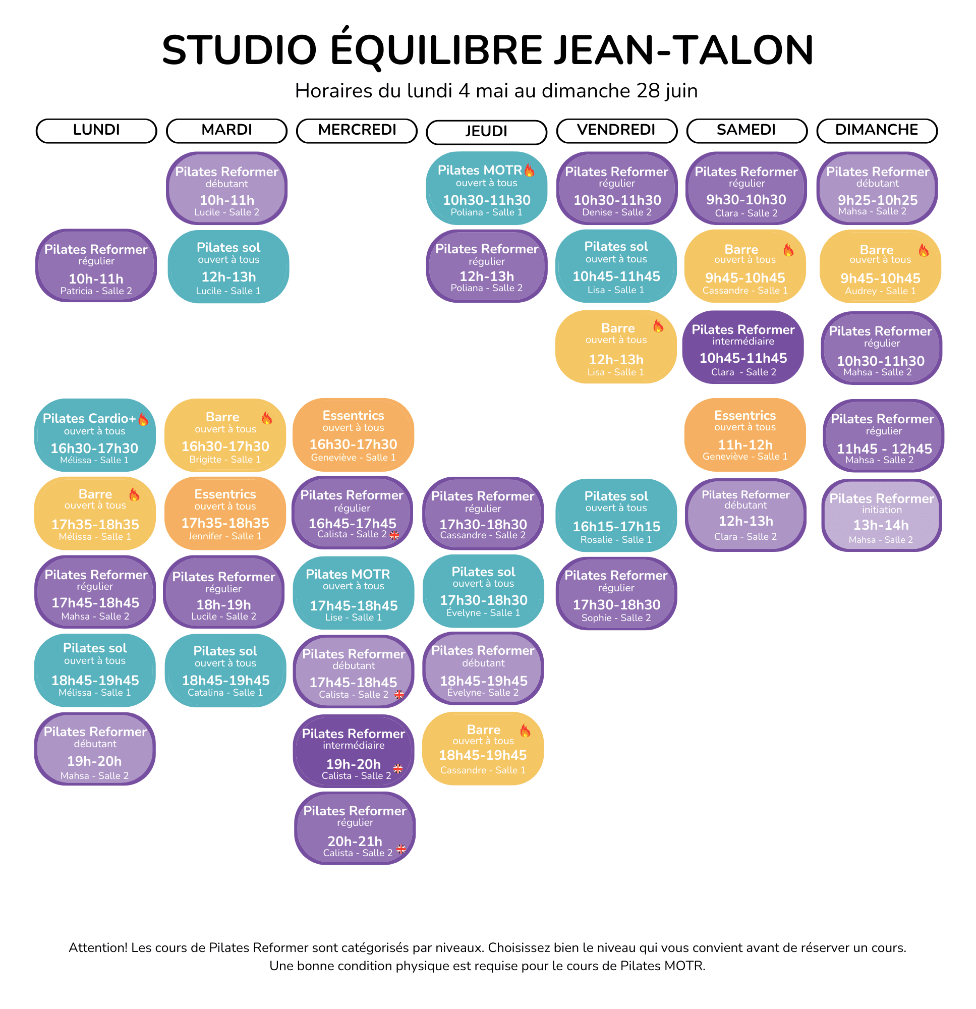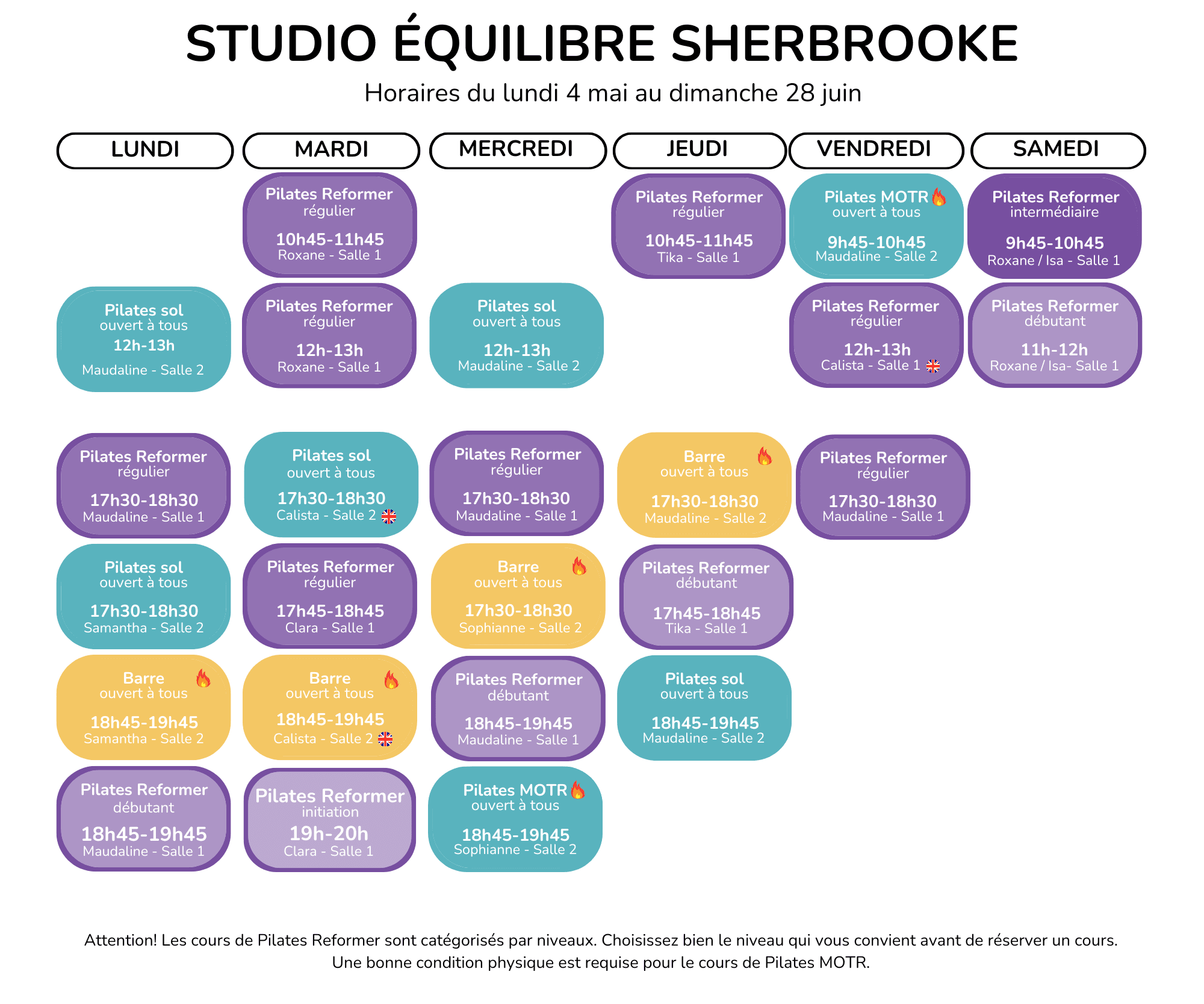 Horaires du lundi 4 mai au dimanche 28 juin